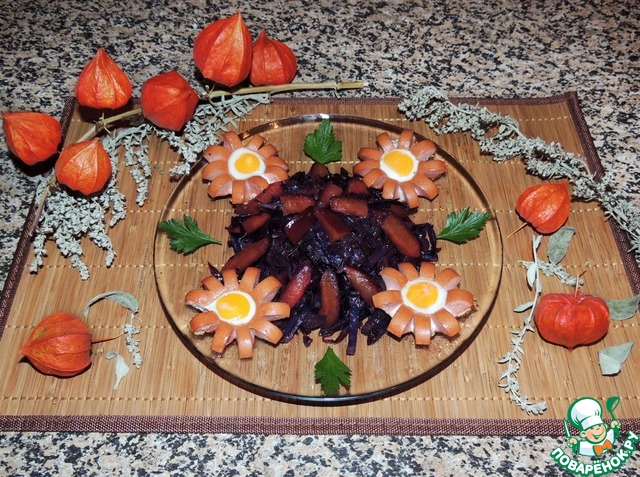 | Предлагаю приготовить на ужин очень вкусный гарнир из краснокочанной капусты со сливами. Может, это сочетание и вам покажется идеальным! А с капустой - конечно же, сосиски (придайте им веселого солнечного настроения). Такой ужин заставит улыбнуться и в хмурый осенний вечер. |