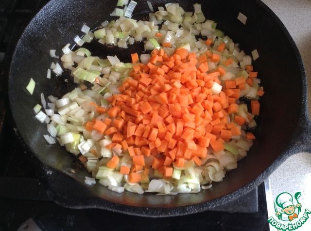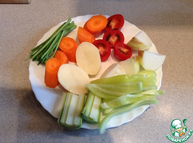 Сверить овощной бульон. Для этого овощи для бульона крупно нарезать.