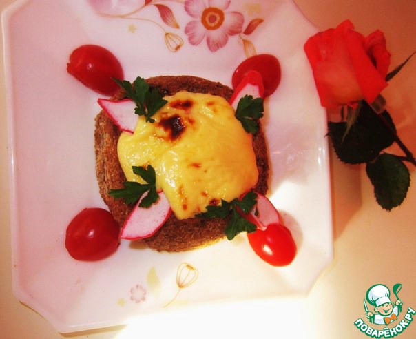 Сверху булочки положить ложку плавленного сыра и отправить в духовку минут на 5- 10