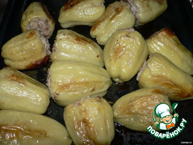 Начините перчики. Не надо очень плотно фаршировать, иначе потом бульон не "проберётся" внутрь.