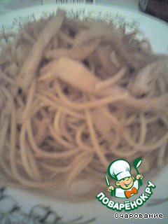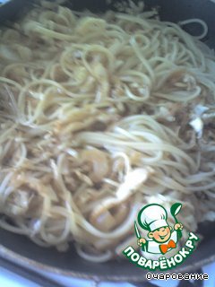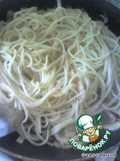 Капусту (у меня была отварная) нарезать соломкой, обжарить.