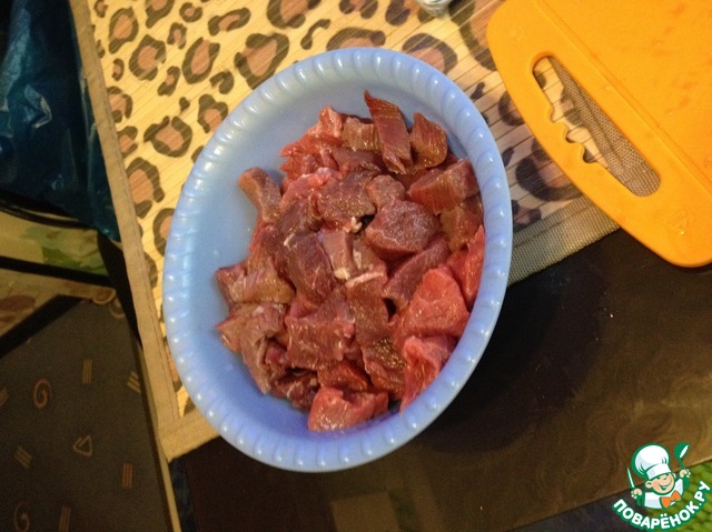 Для начала необходимо вымыть, просушить и нарезать небольшими кусочками мясо