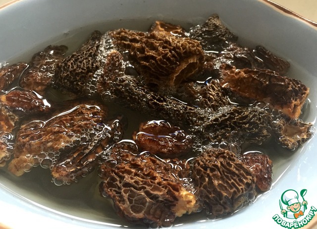 Сморчки заливаем кипятком. самые крупные можно разрезать на несколько частей.