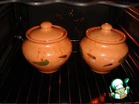 Бульон или воду соединить с майонезом, тщательно перемешать и разлить в горшочки. Чеснок и зелень мелко порубить, переложить в горшочки, посолить поперчить. Накрыть крышечками и отправить в духовой шкаф, нагретый до 180 градусов на 50-60 мин.