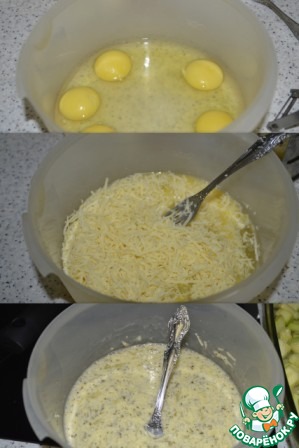 В отдельной миске взбить яйца венчиком, добавить сыр и базилик.
