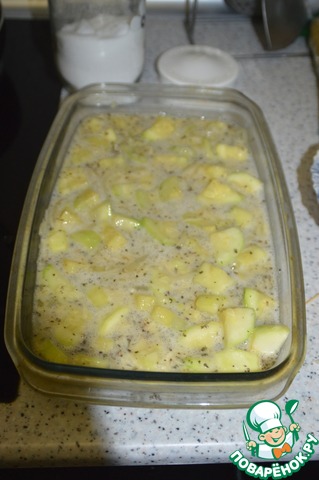 Кабачок помыть, отчистить от кожуры и нарезать кусочками
