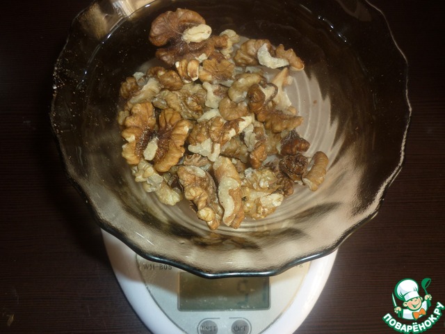 Курагу залить теплой водой и оставить на 30 минут. слить воду, обсушить и нарезать мелкими кубиками.