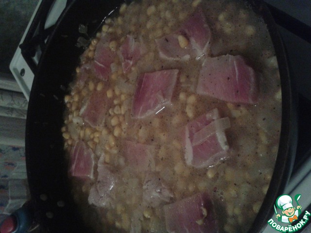 Перекладываем все в форму для запекания, сверху выкладываем мясо, добавляем приправы и заливаем бульоном.