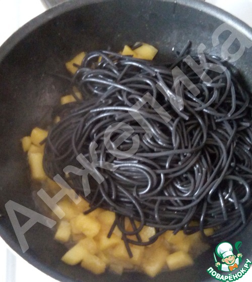 Добавляем отваренную пасту к нашей "пьяной тыкве"))), прогреваем еще минут 5.