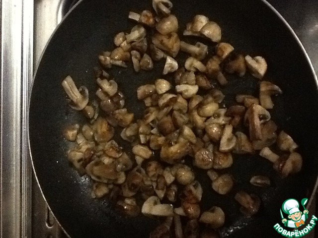 Режем грибы на 4 части и обжариваем минут 7 до появления румяной корочки