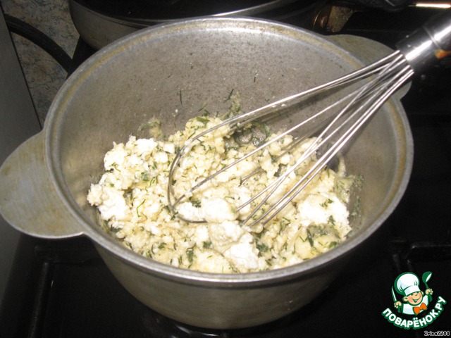 Моего бараньего веса не хватило, чтоб хорошо размешать крупинки творога, но я очень старалась, мешать надо постоянно. Я мешала сначала венчиком, потом толкушкой для пюре, потом вилкой. Сыр был тугой и, конечно, тяжеловато было, но, думаю, 10 минут можно потерпеть)