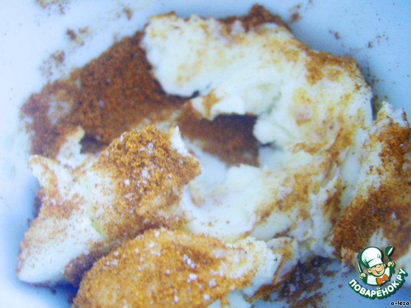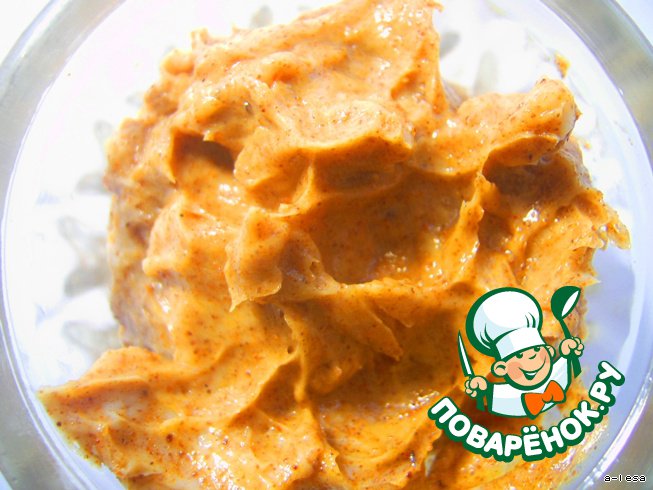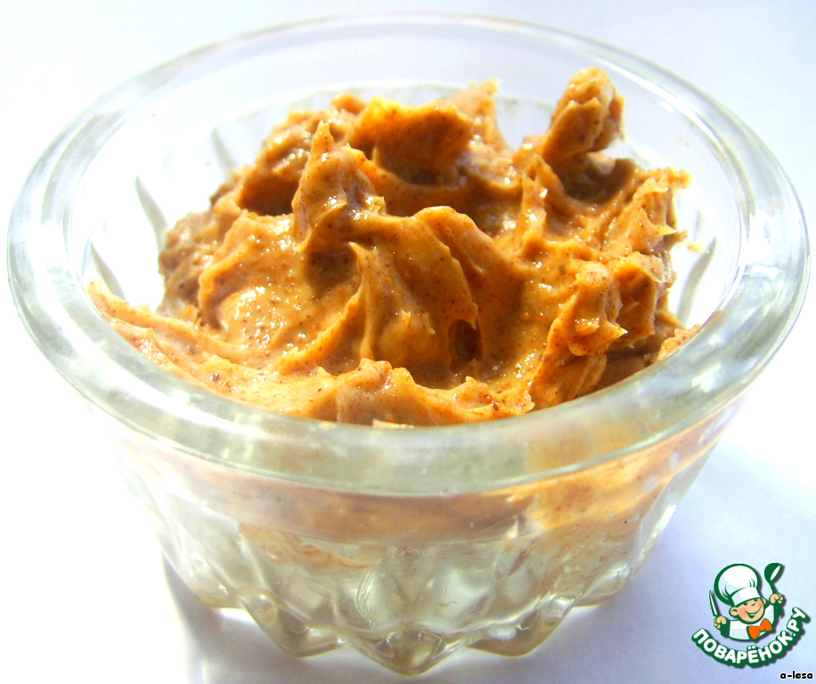 К готовому маслу положить полную с горкой ложечку паприки и соль (можно и не класть).