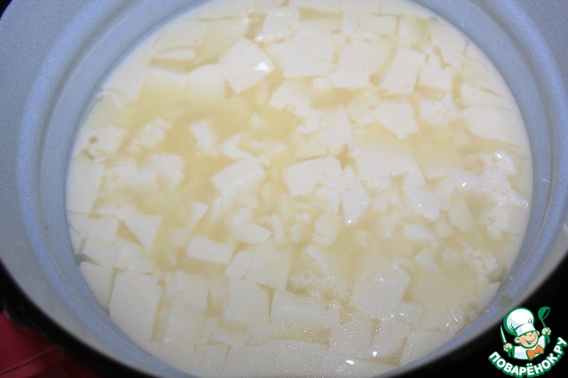 Подождать 10 минут, чтобы сырная масса опустилась на дно