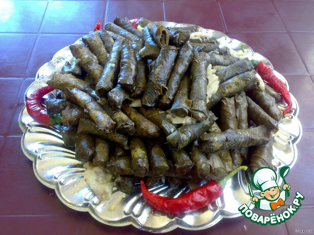 | Ябра – это арабские голубцы в виноградных листьях. Очень вкусное блюдо. Правда, готовится оно долго, зато поедается быстро: это блюдо первым исчезает с праздничного стола. |