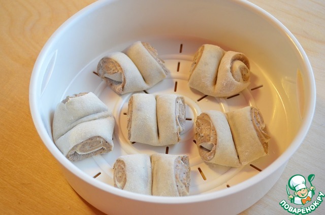7. Выкладываем булочки в контейнер пароварки, имейте в виду булочки увеличатся в три раза!