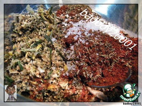 Получится пряная душистая кашица и это, я скажу вам, только начало, добавляем травушки-муравушки, сладкую паприку, размешиваем.