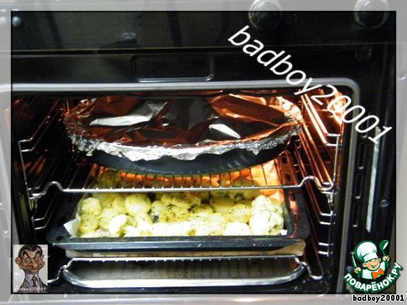 Накрываем фольгой и отправляем в разогретую до 250 градусов духовку ровно на 15 минут.