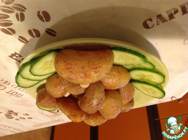 наливаем немного масла на дно мульти и выкладываем в один слой картошку, солим, добавляем специи. Ставим на режим " выпечка" или "пирог" на 45-60 минут. Периодически переворачиваем. По истечению 30 минут добавляем грамм 30 сливочного масла. Еще через минут 20 добавляем чеснок пару зубчиков.