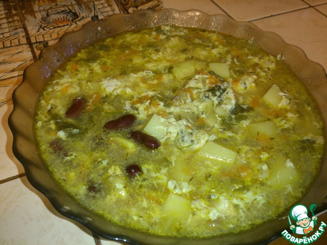 Ну и за 3 минуты до готовки размешиваем суп и вливаем 2 взбитых яйца (сам не знаю зачем я это сделал). Даем 10 минут отстояться и... едим-))) посыпав укропом свежим