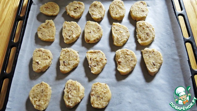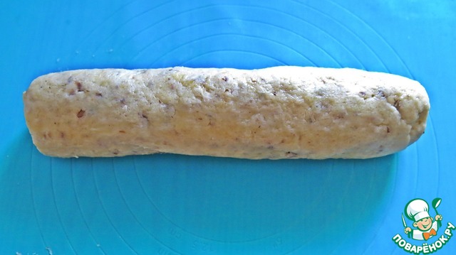 По истечении времени достаем нашу "колбаску" и нарезаем острым ножом - печенье. Около 1 см. толщиной.