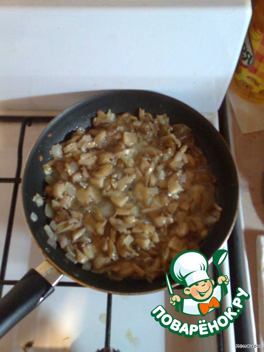 Затем добавляем нарезанные грибы (у меня были шампиньоны).