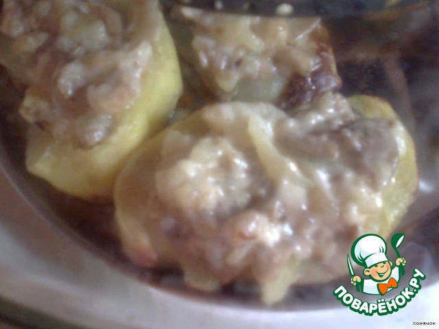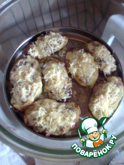 Прежде чем положить начинку, солим картошку. И запекаем еще 10-15 мин, до золотистой корочки.