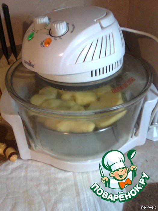 Пока прогревается аэрогриль, почистили картошечку, смазали раст. маслом противень и положили картошечку срезом вниз.