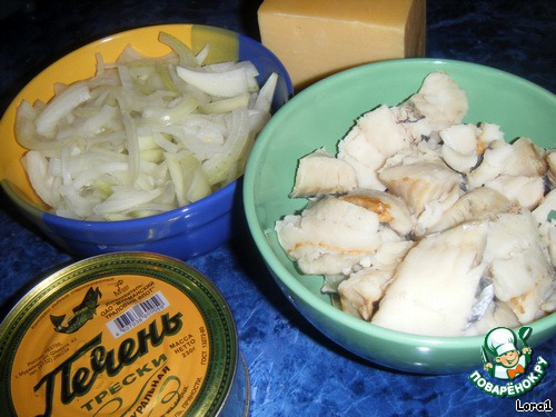 Вскипятить воду и забросить порезанное на кусочки филе Хека, варить минут 7.