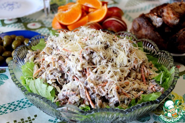| Салатик выдумала из имеющихся продуктов. Получился вкусненький, оригинальный и сытный. С домашней заправкой вместо майонеза. Попробуйте приготовить! |