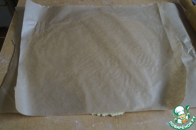 Затем достать и раскатать в тонкий пласт около 1 мм между двумя листами пергамента. Снова убрать в морозильник на 15 минут. Затем достать и положить в холодильник.