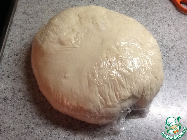 Добавить остальные ингредиенты. Замесить тесто. Положить его в миску и затянуть пищевой плёнкой. Поставить миску в тёплое место без сквозняков на 1 час.