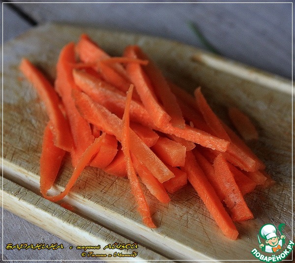 Морковку режем тонкой соломкой. Именно тонкой. Это вам не плов.