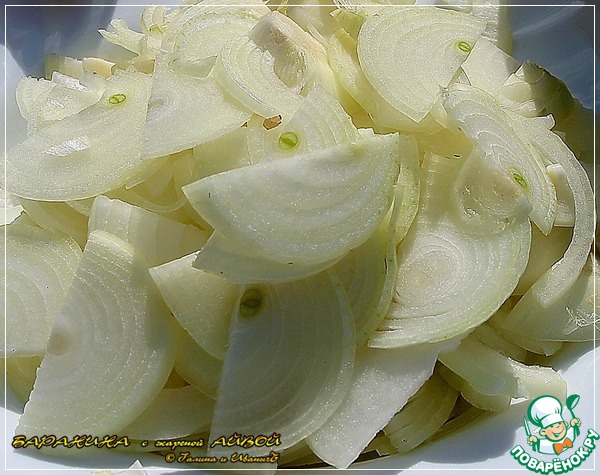 И потом туда лучок, нарезанный нетолсто полукольцами.