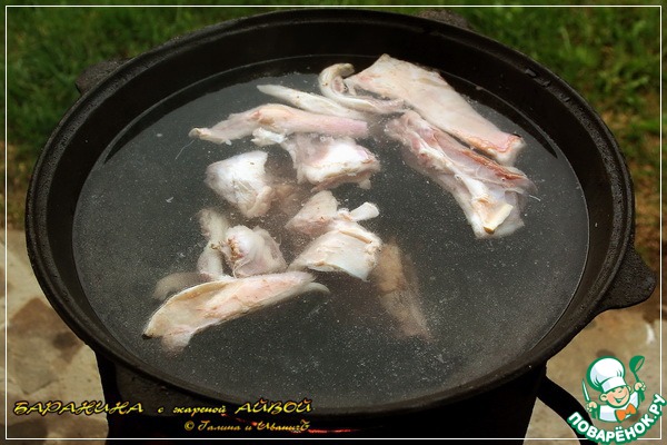 Скажу сразу пару слов о втором казане. Наливаем туда «просто» воды. И закладываем все то мясное, про которое был разговор, в смысле - «тоже пригодятся».