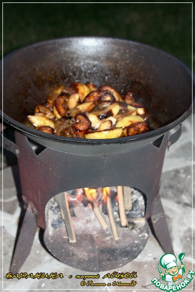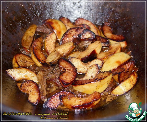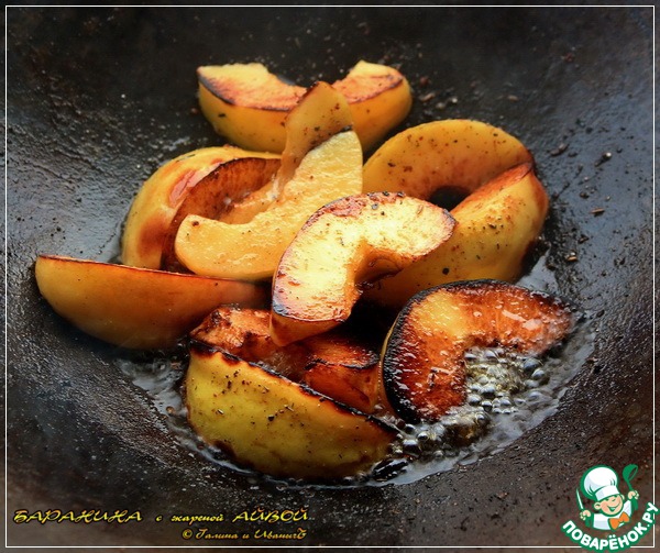 Итак, жарим, вернее, обжариваем айву.