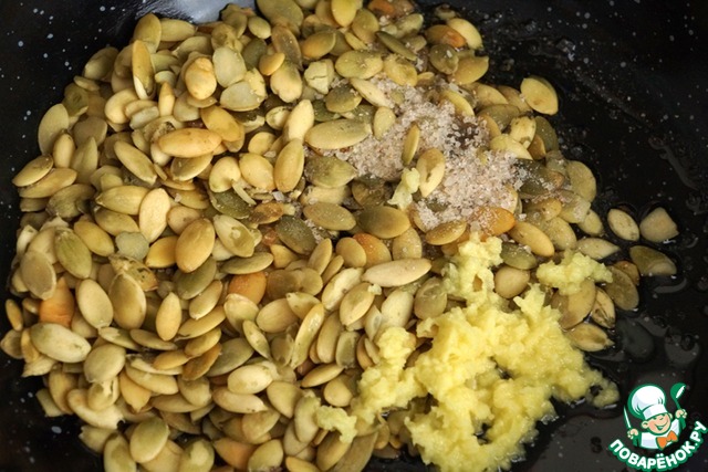 А мы тем временем приготовим вкусное дополнение, пикантные семечки. Ни в коем случае не игнорируйте этот шаг, это очень вкусно!