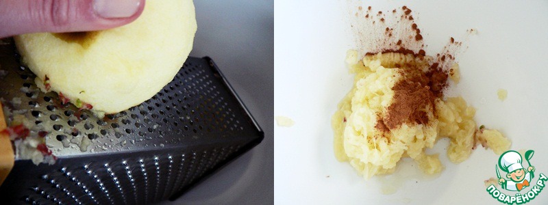 Яблоки промыть, очистить от кожуры и натереть на самой мелкой тёрке, дабы получалось яблочное пюре. Добавить корицу, перемешать.