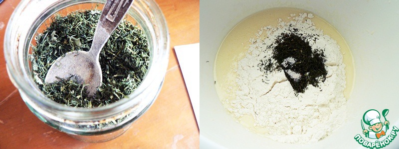 Добавить в яичную массу муку, соль и укроп.