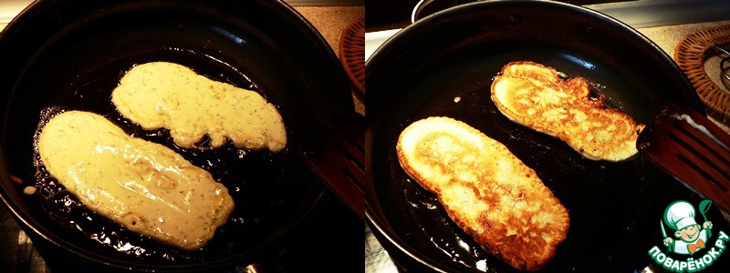 Сковороду разогреть, ложкой вылить тесто, формируя полоски. Обжаривать блины 1-2 минуты с каждой стороны.