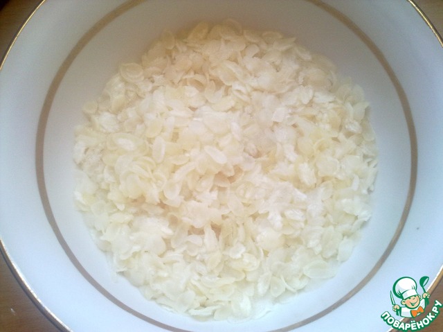 Заварить рисовые хлопья горячей водой.