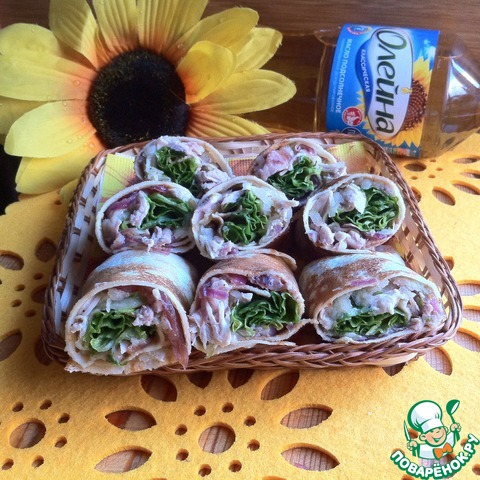 | Блины- замечательная основа для порционных рулетов. Я предлагаю приготовить симпатичные и нежирные рулетики. Если Вы любите легкую сладость в блюдах с птицей, милости прошу. |