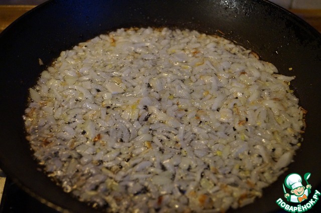 Лук мелко порубить и обжарить на растительном масле "Олейна" до золотистого цвета
