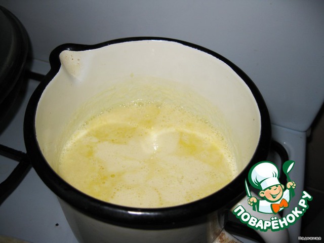 Готовим соус к мясу: сливки ставим на огонь и доводим до кипения
