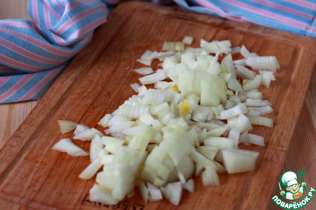 Нарубите лук и чеснок. Лука должно быть много - тогда соус будет очень вкусным и густым. Да и вообще, мясо любит лук.