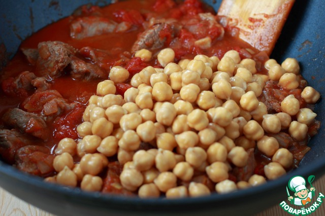 В результате вы получите нежнейшее, тающее во рту мясо с островатой томатной подливой и вкусным мягким нутом в качестве гарнира.