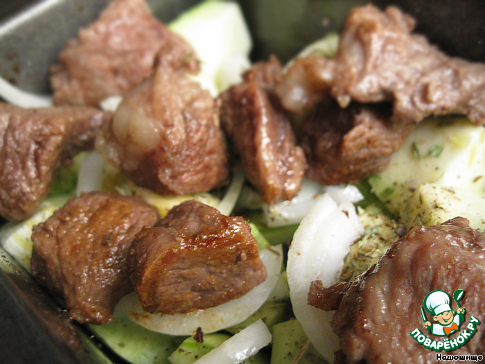 Говядину нужно обжарить до полуготовности на растительном масле.