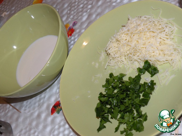 Сливки подготовим, петрушку порубим и натрем на мелкой терке сырок. *SCRATCH*