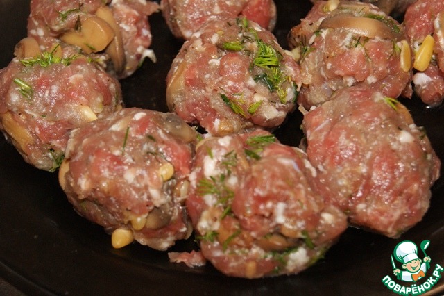 Из фарша сформовать фрикадели величиной чуть крупнее грецкого ореха.