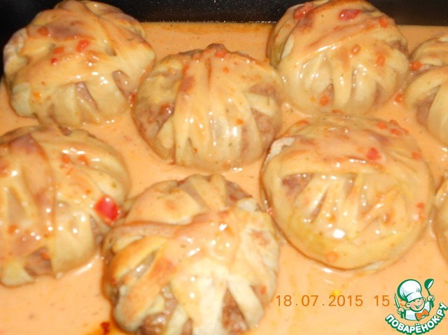 Через 20 мин достать клубочки и залить соусом и поставить еще на 30 мин при той же температуре