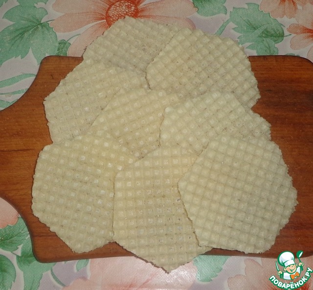 На сковороду наливаем оливковое масло и выкладываем вафли. Обжариваем с двух сторон до золотистого цвета.